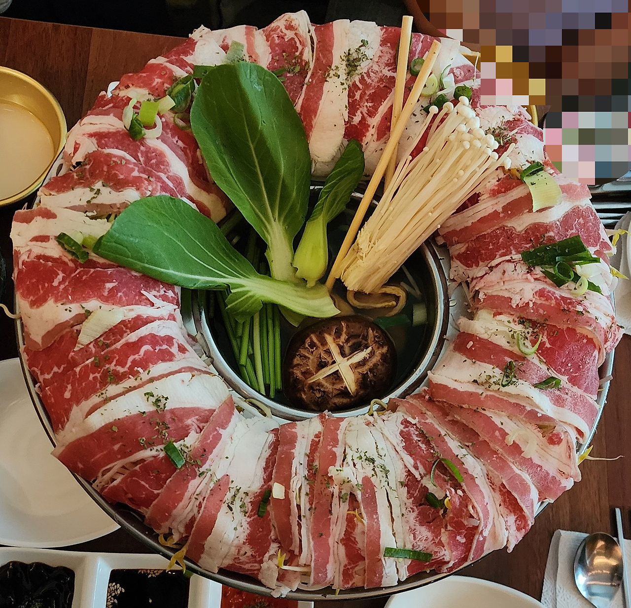 - 얇게 썬 소고기와 숙주, 배추, 버섯, 쪽파 등 신선한 재료들이 듬뿍 들어가 있습니다.
